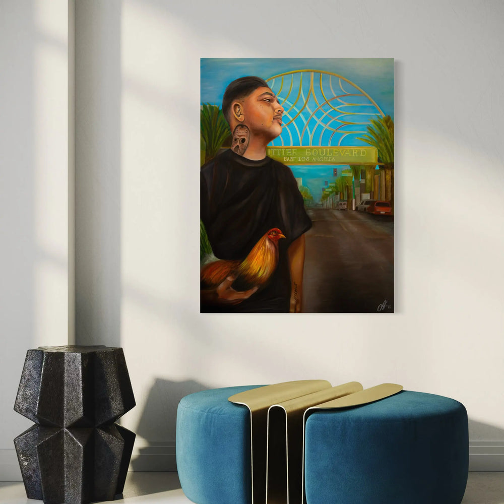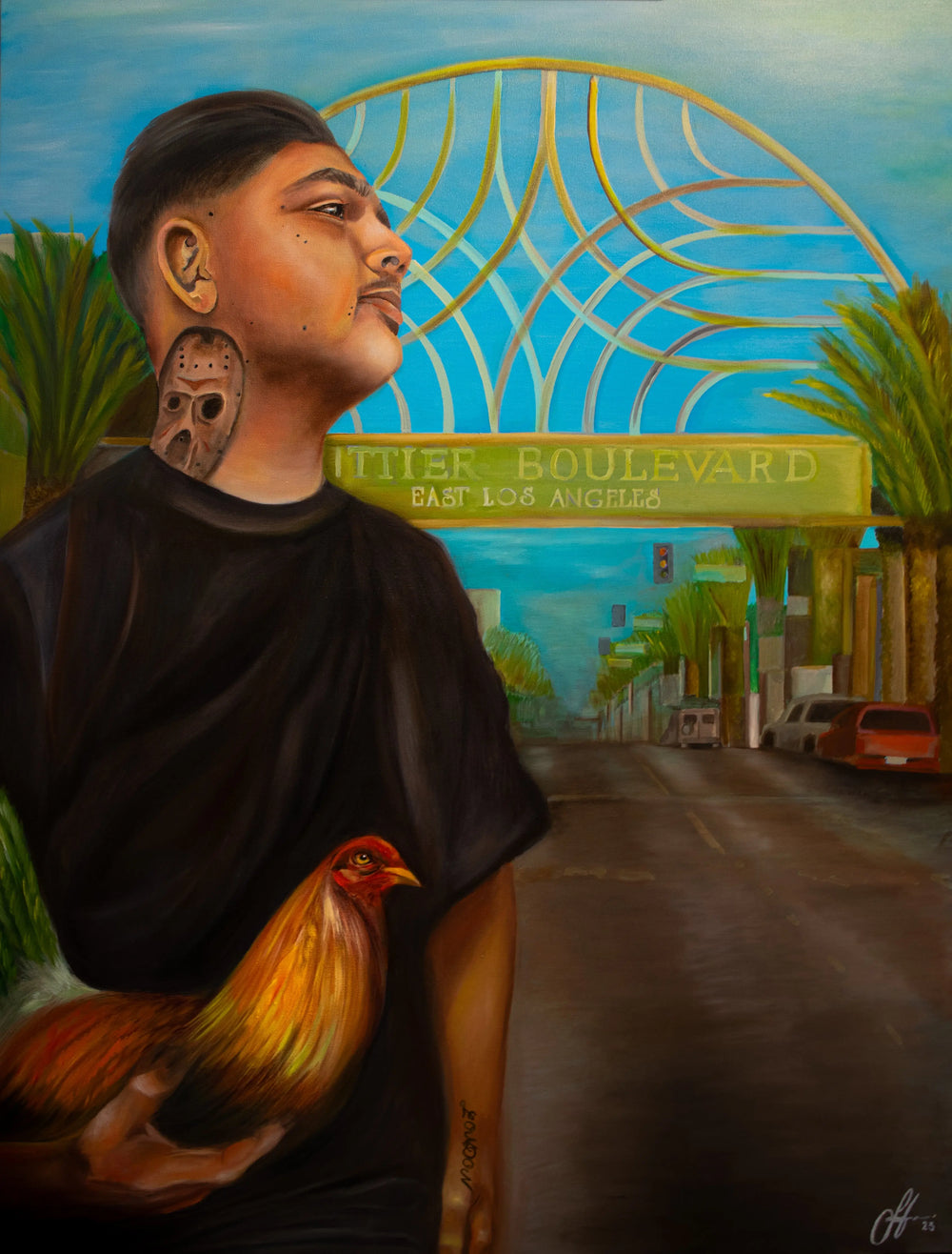 "El Giro in the Blvd" by Jesse Fregozo is a vibrant 30x40 oil on canvas that captures the dynamic energy and cultural vitality of Boyle Heights' most iconic thoroughfare. This work pulses with movement and life, translating the boulevard's constant motion—its people, its spirit, its undeniable presence—into a visual experience that draws viewers directly into the heart of the community. Fregozo's command of oil paint brings authenticity and emotional resonance to this urban landscape. Rather than treating the boulevard as mere backdrop, the artist celebrates it as a living entity, a stage where culture, commerce, and human connection intersect. Every element speaks to the artist's intimate knowledge of his neighborhood and his commitment to preserving its character through art. This painting deserves a place in your collection because it represents something increasingly rare: genuine, unfiltered documentation of community life by an artist who belongs to that community. "El Giro in the Blvd" isn't created from observation alone—it's born from lived experience and deep cultural understanding. The 30x40 scale ensures this work commands presence without overwhelming a space, making it ideal for collectors seeking meaningful art that sparks dialogue and reflection. Owning this piece means supporting an artist dedicated to ensuring Boyle Heights' stories are told with authenticity, pride, and undeniable artistic skill.