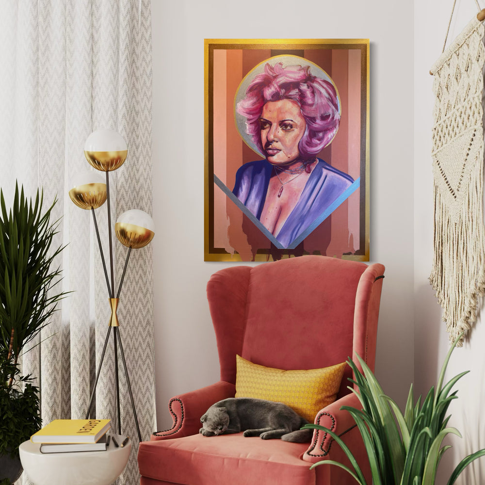Rachelle The Big Hearted is a striking acrylic painting on canvas measuring 40 by 30 inches, completed in 2021. This substantial work demonstrates sophisticated color application and compositional balance characteristic of contemporary figurative art. The piece showcases the artist's command of acrylic medium, with layered brushwork that creates depth and visual interest across the canvas. At this scale, the painting commands attention as a focal point in any gallery or private collection, offering viewers an immersive experience with the work's emotional resonance and technical execution. Ideal for collectors seeking meaningful contemporary art with substantial presence and artistic merit.